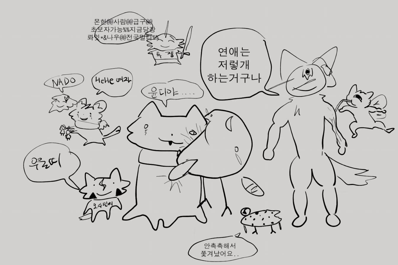 - 간단 낙서 선화 + 대사 또는 글(선택) 으로 들어갑니다. 컨펌은 받지 않는 타입입니다.
